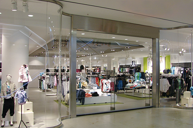 Beispielhaft für Raum-in-Raum-Architektur im Shop-Bereich ist diese Lösung. Mit einer Ganzglasabtrennung schafft LOSCH Transparenz, Anziehung und Flexibilität für den Shop-Betreiber und seine Waren. Durch seine verschiedenen Grundrissformen kann die LOSCHWAND® bei jeder Art von Glasfassade eingebaut werden. Die Glasteile werden unsichtbar in einer abgehängten Decke gestapelt und stilvoll verstaut. Nachts verschließt die diebstahlsichere Fassade das Geschäft flächenbündig.