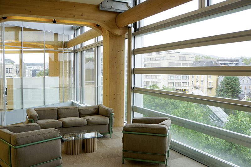 Das neue Verlagsgebäude der Züricher Tamedia AG konnte im Juli 2013 eingeweiht und von den Mitarbeitern des renommierten Züricher Tagblattes bezogen werden. Ein außergewöhnlicher architektonischer Entwurf des japanischen Stararchitekten Shigeru Ban wurde hier realisiert. Das Gebäude besteht komplett aus Holz und Glas. Auf Metall wurde gänzlich verzichtet. Shigeru Ban hatte die Vision, eine wind- und wasserdichte Außenfassade aus Glas zu installieren, bei der sich einzelne Elemente öffnen lassen, so dass aus einem geschlossenen Raum ein offener "Balkon" entsteht, ohne dass Fensterscheiben oder Schiebetüren zu Hindernissen werden. Die Glasfassaden sollten den hohen Ansprüchen entsprechen und zu Design und Architektur des Gebäudes passen, sowie nachhaltig und energieeffizient sein.